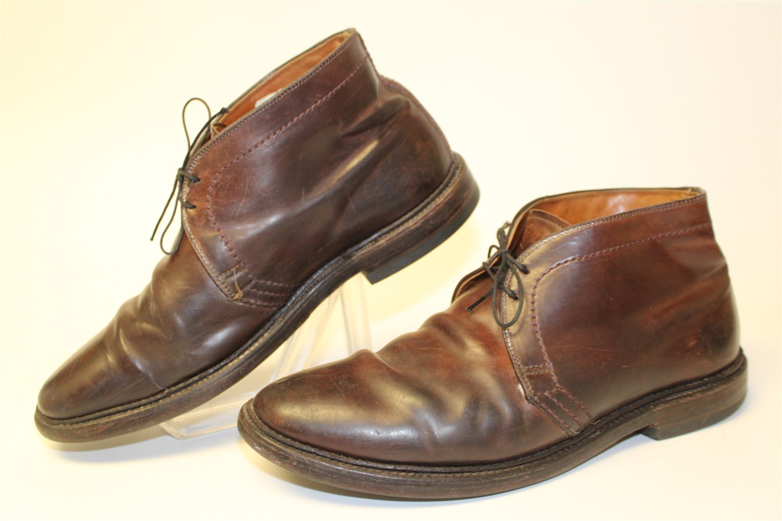 The Alden boots are pre-owned and are in good used condition, there is wear and wear marks to them in areas. The bottom soles have a little bit of heel wear to each boot, please view all the photos to see the condition of the boots.