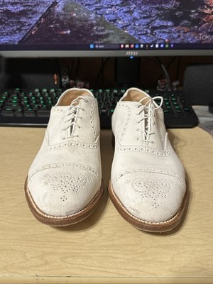 Alden 24570 white nubuck suede medallion oxfords, size 11 AA/B. Shoes are in unworn condition, but have several markings on the outside.