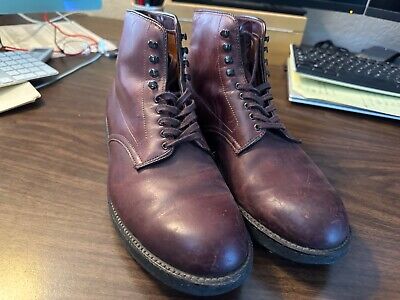 ALDEN 9.5D BURGUNDY PLAIN TOE VIBRAM SOLE LEATHER BOOTS 30772H