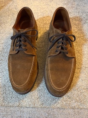 Alden 73035C Snuff Suede Ranger Shoes Commando soles Van Last USA Excellent Condition! Size 9D rusty snuff suede with hand stitched moc toe. Includes box papers shoes, original flat laces, dust bags, (shoe trees not included) free fast safe secure same day shipping included. The have been very sparingly worn (a few times at most) and always stored in cedar shoe trees (not included). These are leather lined, have a steel shank for all day support, commando soles for low profile traction, leather insoles, antique edging, Goodyear welted and rebuildable, they’re beautiful inside and out. Thanks for looking, I’ll have more beautiful Alden shoes to list shortly! MSRP north of $600 plus.