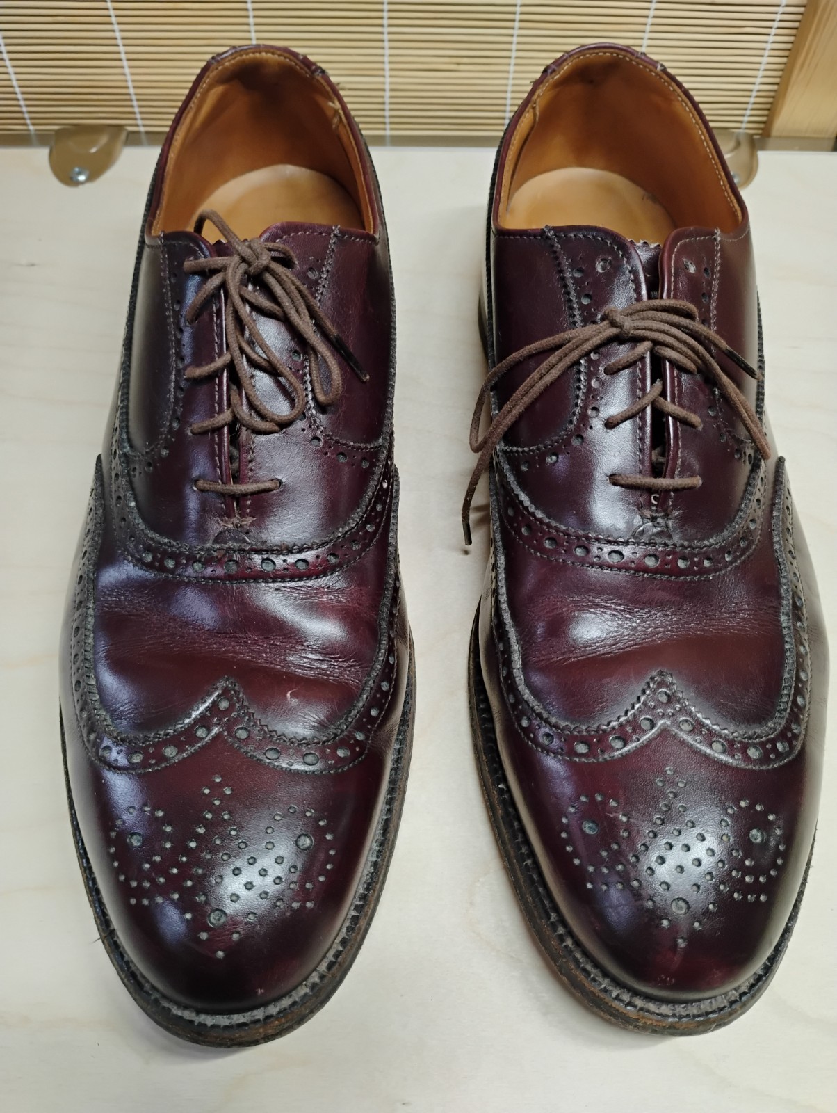 Type: Dress Keywords: wingtip shoes, brogue shoes, oxford shoes, dress shoes, mens leather shoes, burgundy shoes, lace up shoes, formal shoes, classic shoes, mens footwear, leather oxfords, brogue detailing, allen edmonds, mens style, business casual