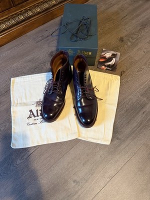 Really nice Shell Cordovan Aldens, very little wear on them great shape, no issues at all.   These were sold initially as seconds but I haven't the slightest idea why, I looked them over top to bottom and found no issues, but wanted to mention that.  Sold with bags and Alden box but not with shoe trees.  Alden Plain Toe Boot in Color 8 Shell Cordovan •Barrie Last  •Matching Eyelets & Hooks  •360 Flat Welt  •Antique Welt and Sole Edge  •Double Waterlock Soles/Dovetail Heels  •Made in Massachusetts