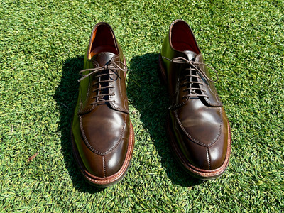 Alden Cigar Shell Cordovan V-tip Blucher size 9.5 C Barrie last on Commando sole + Alden branded cedar trees.