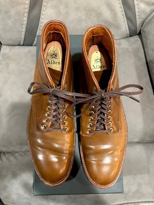 Alden Whiskey Shell Cordovan Plain Toe Boots Brass Eyelets Leather sole Barrie last Size 8.5D Alden branded shoe trees included Worn twice Made in USA