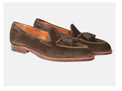 For sale is a brand new pair of size 11D Alden of New England Suede Tassel Loafers. The color is listed as ”Olive” but they are more like a brown with a hint of olive. Beautiful shoes but I am selling because they are too big and I cannot return them. They have only been worn to try on.