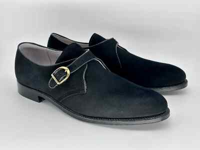 Alden D3416 Monk Strap in supple, soft Black Kid suede. Size 10.5 D (Medium width). Made in USA. Kid suede offers a finer nap than calf suede for a smooth luxurious appearance. This model was made exclusively for Nordstrom. Fully leather lined with leather sole. There is a strap and buckle closure. Pro-tip: the buckle portion of this construction is attached with an elastic gore, so once the strap is set at the correct tension you can easily slip into this shoe with a shoe horn, without having to unbuckle and rebuckle every time.This shoe is made on the Aberdeen last which generally runs true to size. Please know your Aberdeen size. This pair is new in box, never worn. No returns.