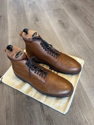 Alden D4816H Country Tan Plain Toe Boot 9 D JCrew. The boots are made on the Barrie last, so typically a 9 boot fits a 9.5 foot. Boots have crepe soles. Shoe trees not included.