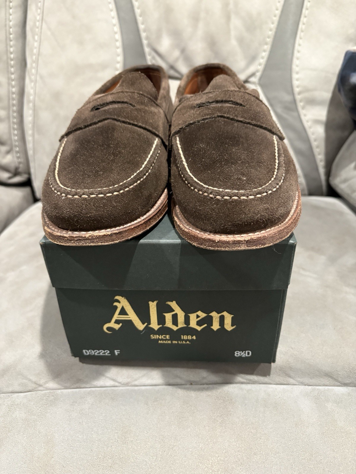 Bought brand new from Alden retailer in Massachusetts .. unlined LHS penny loafer , Loden color suede .. was a special makeup retailed around $675 … these were never worn … brand new condition with original box and shoe bags ..
