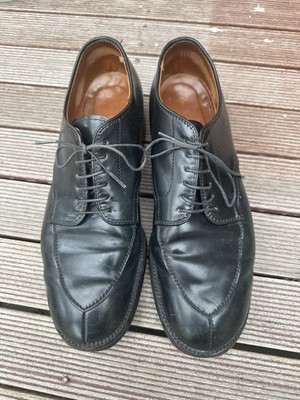 Well worn pair of Alden derbies in black cordovan. Original sole.